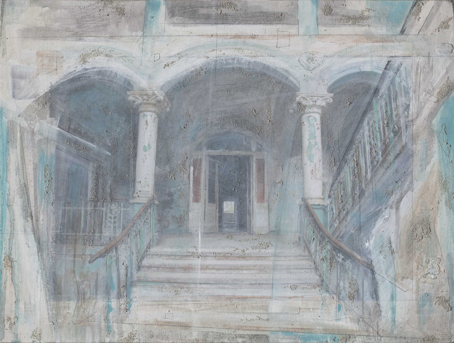 Die italienische Malerin Daniela Gullotta setzt sich in ihren Werken mit Architektur auseinander, wobei sie sich insbesondere für verlassene, dem Verfall preisgegebene Bauten interessiert. Deren Magie und stille Vergegenwärtigung der Vergangenheit bilden Anlass und Inhalt ihrer Werke. So setzt sie sich etwa 2014 in einer Serie von Bildern mit leer stehenden Bauten in Deutschland auseinander, unter diesen die ehemaligen Heilstätten von Beelitz, ein aufgegebenes, teils verfallenes Sanatorium bei Berlin, oder die Ruine des alten Chemiewerkes Rüdersdorf (Märkisch-Oderland). Doch thematisiert die Künstlerin durchaus auch Architekturen, deren Funktion noch gewahrt ist wie in ihrer Serie zum Kölner Dom. Allerdings gibt sie diesen in ihren Bildern der Zerstörung preis, indem sie sein Inneres mit aufgerissenem Fußboden darstellt. Die Künstlerin reflektiert hier zum einen die kontinuierliche Bau- und Restaurierungstätigkeit am Dom, zum anderen stellt sie die Frage nach dessen möglicher Zukunft angesichts der schwindenden Gottesbindung der Menschen.Ihre künstlerischen Recherchen richtet Gullotta vorwiegend auf die Innenräume der Architekturen, die sie zunächst in Schwarzweiß-Fotografien festhält. Auf einen Malgrund, meist Holz, montiert, bearbeitet und erweitert sie diese mittels verschiedener malerischer und zeichnerischer Techniken in Öl, Acryl, Bleistift und Kohle. Sand-Farbe-Mischungen, Leinwand- und Gazefragmente geben den Bildern Reliefhaftigkeit und unterstreichen, dass die fotografische Grundlage nebensächlich ist. Die Künstlerin transformiert auf diese Weise reale Architektur in eine fiktive und lässt die geheimnisvolle, mit Vergangenheit getränkte Atmosphäre der verlassenen Gebäude samt der sie einst belebenden Generationen von Menschen spürbar werden.