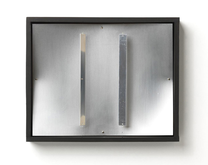 Aluminiumplatte, Nylonfäden, Aluminiumstreifen, Holzrahmen, 1973